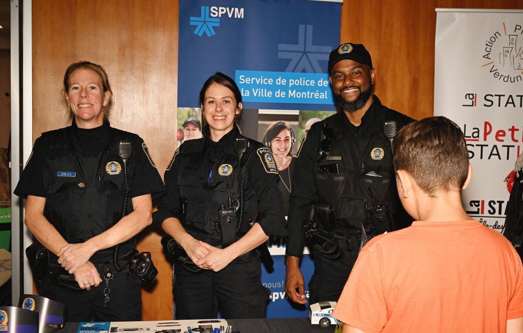 Les agents sociaux communautaires Marie-Ève Lépine et Marie-Ève Laframboise, en compagnie de l’agent Hervé Jr. Louis.