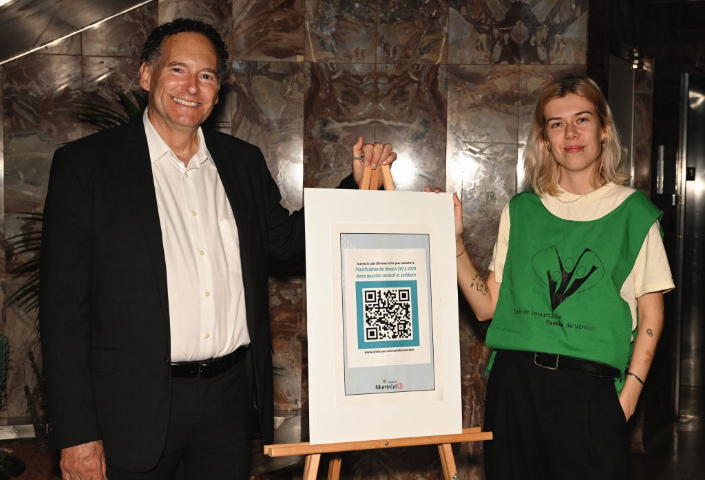 Guy Lacroix, conseiller en développement communautaire à l’arrondissement de Verdun et Maya Maltais, étudiante au BAC en travail social à l’université de Montréal, accueillaient les visiteurs à l’entrée de la mairie d’arrondissement.