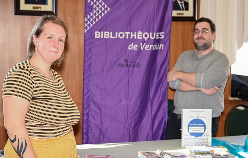 Valérie Longpré et Charles Brochu, de la Bibliothèque Jacqueline-De-Repentigny.