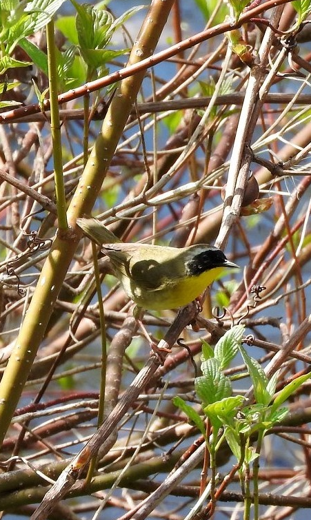 En période de reproduction, de mars jusqu’au mois d’août, cette paruline prend des airs carnavalesques ! Il s’agit de la paruline masquée, ironiquement, la plus facile des parulines à identifier. Son dos, ses ailes et sa queue sont de couleur olive. Cependant, son ventre ainsi que sa gorge sont d’un jaune vif et une bande noire couvre entièrement ses yeux et son front, prenant la forme d’un demi-masque… tel un loup pour un bal masqué.