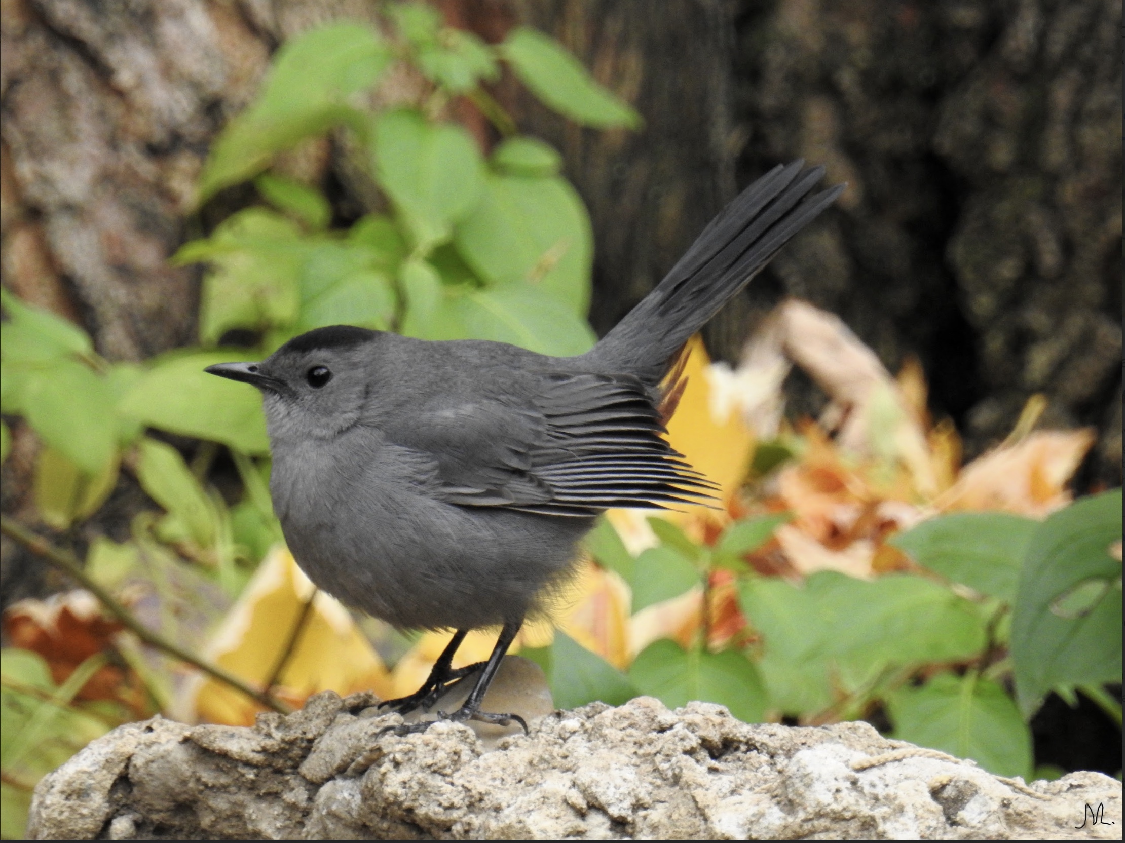 Le début du mois de novembre et la grisaille bien implantée n’empêchent en rien nos petits plumets colorés de nous visiter. Ces derniers jours, la visite chez moi d’un oiseau rarissime en milieu urbain a fait mon bonheur. Juste avant qu’il ne disparaisse, en migration vers le Sud, un moqueur chat est venu se nourrir de nos insectes à quelques mètres de moi. Ce charmant oiseau est apparu dans les branches d’un cèdre, où, habituellement je vois mésanges, sittelles, roselins, chardonnerets, pics mineurs et roitelets, pour ne nommer que ceux-là ! Le nom du moqueur chat vient du fait que son chant imite le miaulement du chat. Son deuxième appel est composé d’un « quirt » et le troisième, un bruyant chek-chek-chek.