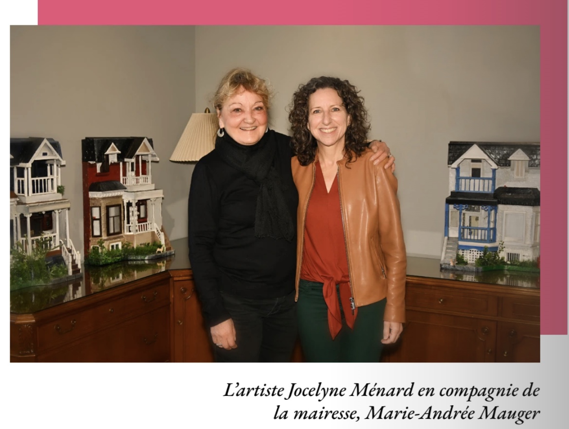 À quelques semaines de la fin de son mandat de mairesse de Verdun, Marie-Andrée Mauger a accueilli Jocelyne Ménard à la mairie. Rappelons que l’arrondissement a fait appel à l’artiste il y a quelques années pour reproduire les cottages en rangée de la rue May, expropriées et démolies lors de la construction du nouveau pont Samuel-de-Champlain. L’ensemble est impressionnant et vaut le déplacement en souhaitant que cette imposante maquette de la rue May prenne place dans un endroit plus visible du grand public.