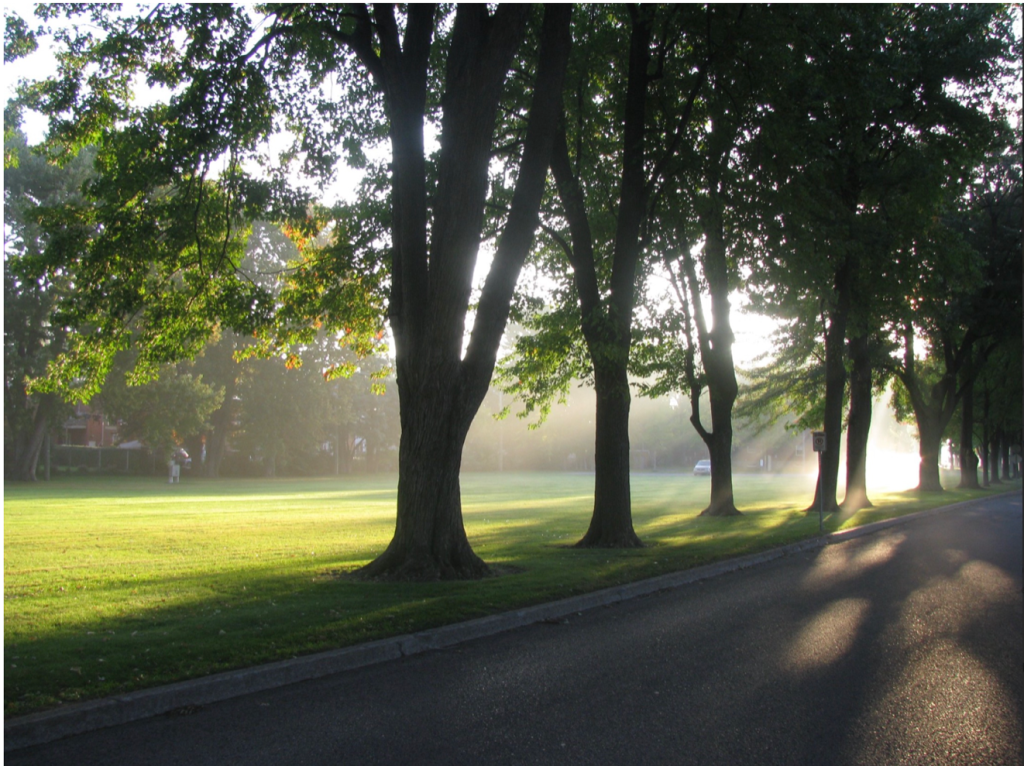 Allée principale bordée d’arbres représentative de la période pittoresque et d’un campus rural, en plein cœur de la ville (Photo : Explore Verdun— IDS)