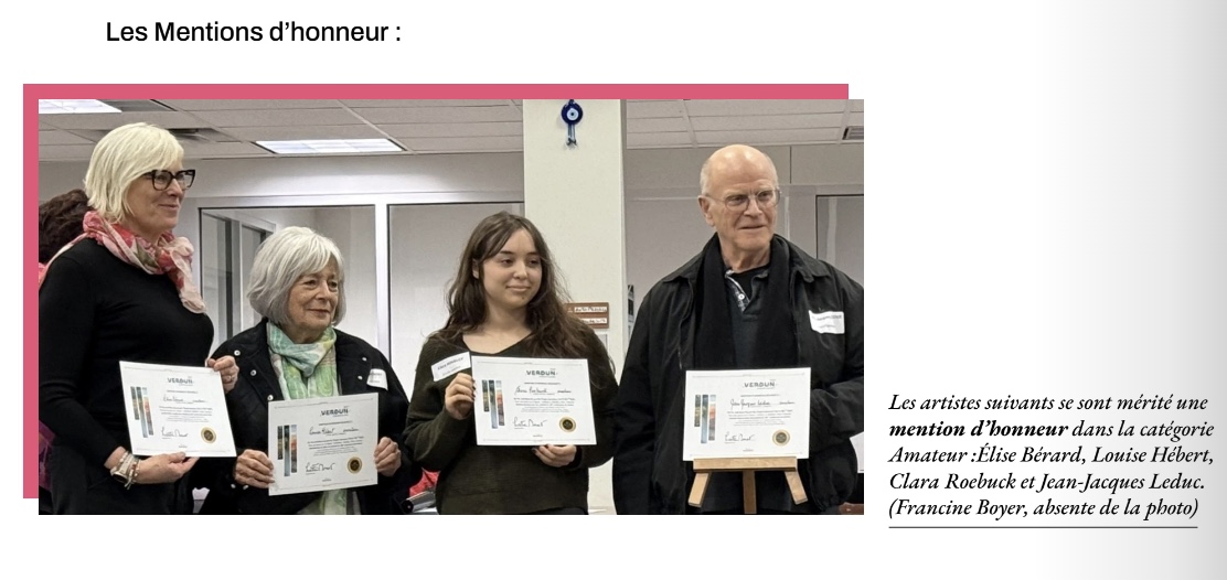 Grâce à un appel d’artistes publié dans Explore Verdun Île-des-Sœurs, en avril dernier, 81 artistes-peintres se sont joints à ce rassemblement artistique hors de l’ordinaire. Autant les artistes amateurs, les émergents ou les professionnels ont participé avec grand plaisir. Les toiles ont été soigneusement évaluées par 8 juges indépendants et 24 mentions d’honneur ont été décernées en tenant compte de la catégorie des artistes.