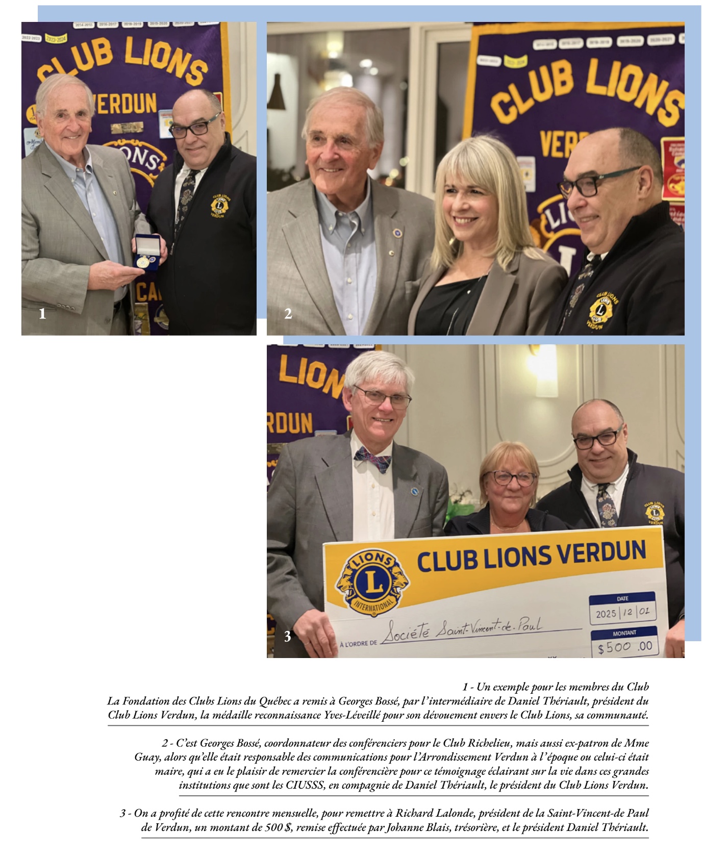 Toujours actif, toujours à l’affut de sujets intéressants pour captiver ses membres, le Club Lions de Verdun a rempli une fois de plus sa promesse en invitant Monique Guay comme conférencière, lors de son souper mensuel, tenu le 2 décembre dernier.