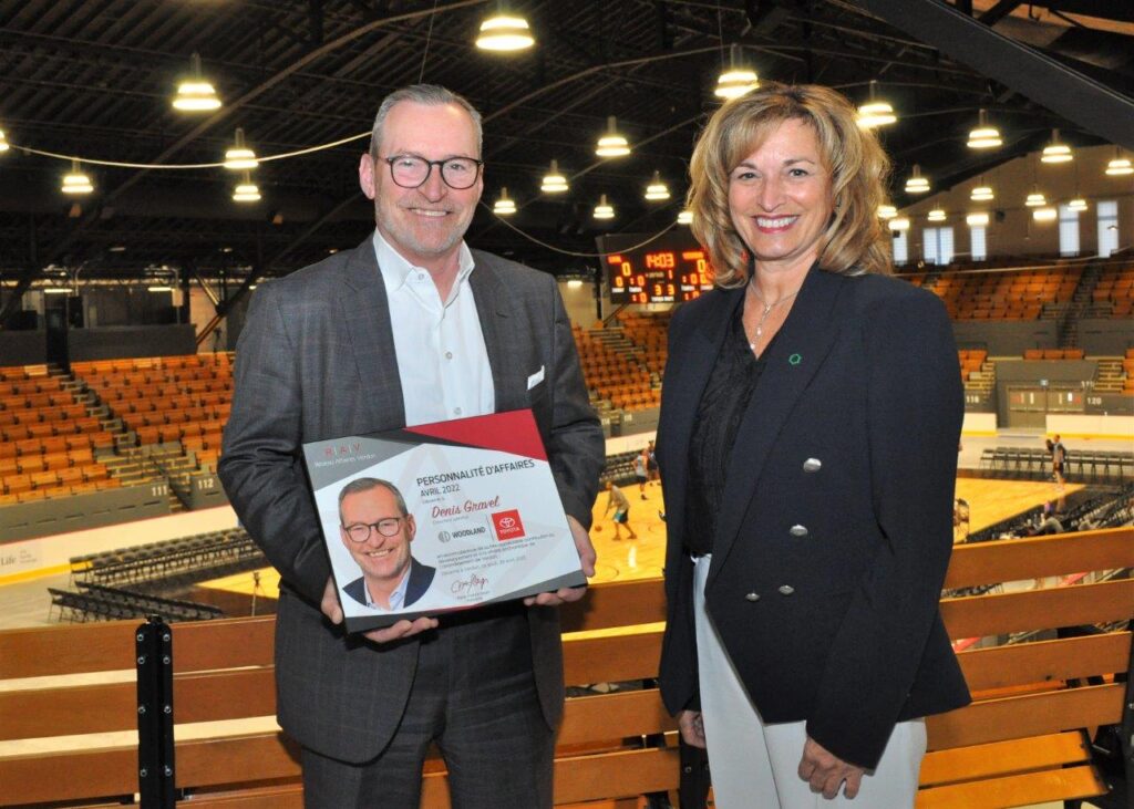 Marie-France Boyer, présidente du R.A.V. a profité de l’occasion pour remettre à Denis Gravel (Woodland Toyota) la plaque commémorative de sa nomination au titre de Personnalité d’affaires d’avril 2022.