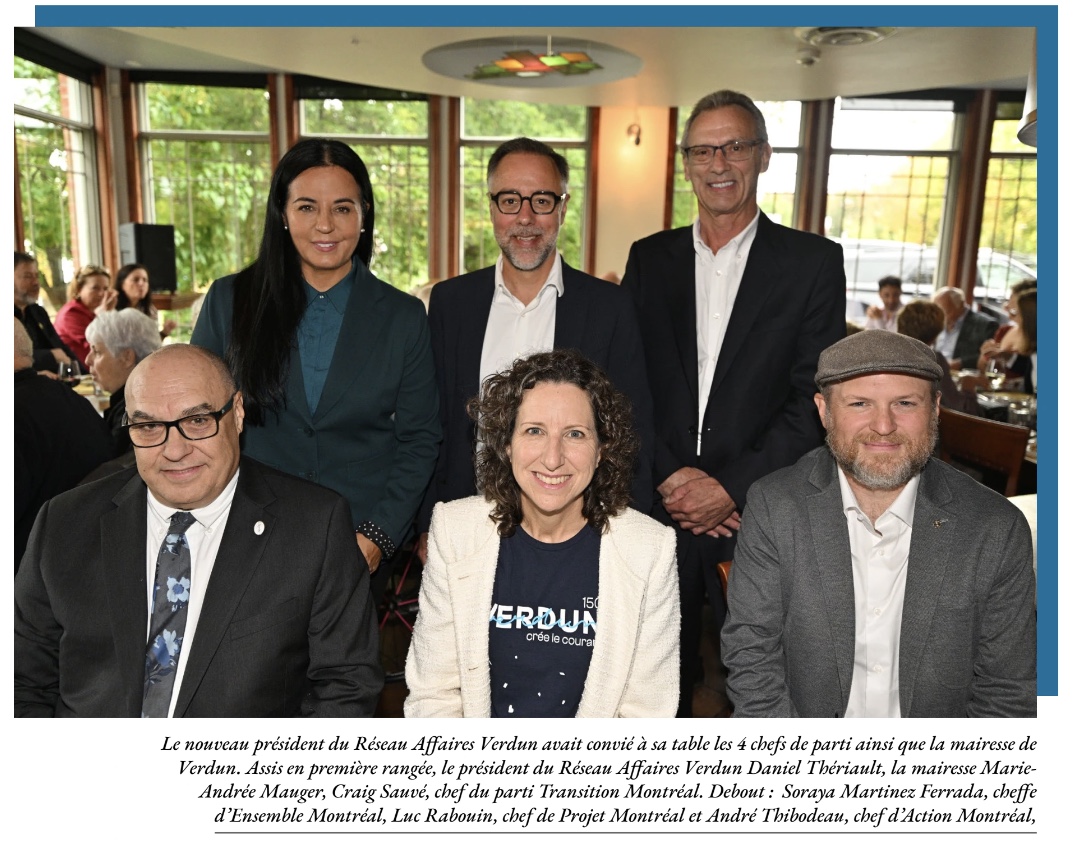 Le Réseau Affaires Verdun (RAV) a invité les quatre principaux candidats à la mairie de Montréal aux élections du 2 novembre prochain, à venir se présenter devant ses membres et invités, dans le cadre de son Midi-motivation du 25 septembre dernier, au restaurant Crescendo. Les journalistes Pierre Lussier et Robert Leduc livrent ici leurs reportages.