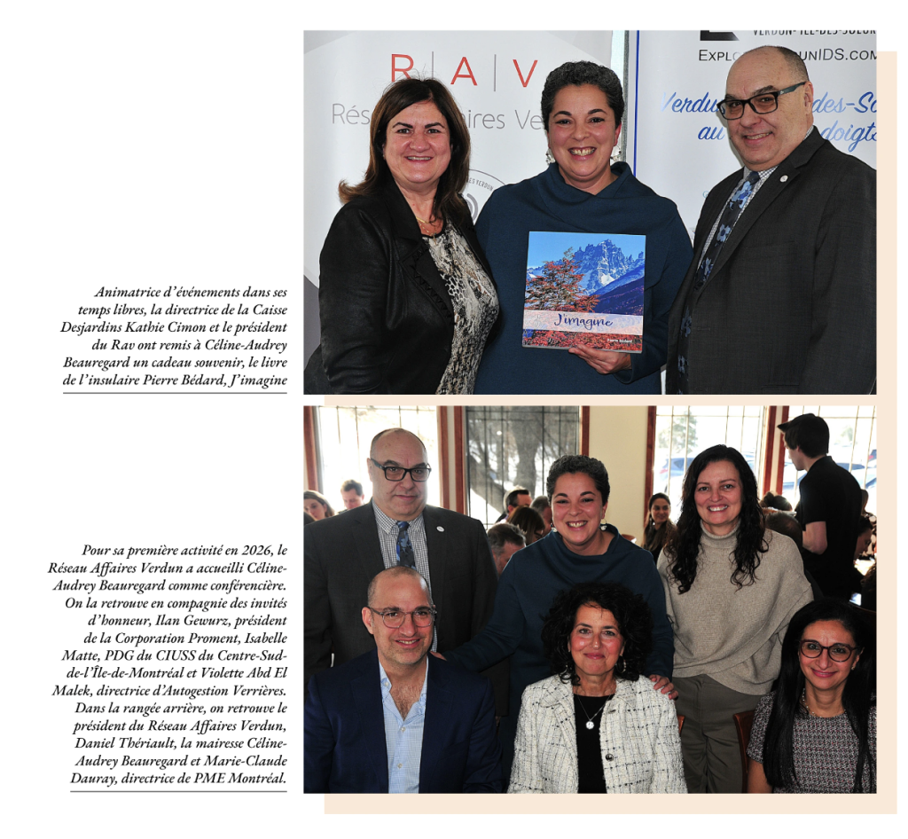 C’est connu : la conseillère sortante devenue mairesse de l’arrondissement de Verdun le 2 novembre 2025, Céline-Audrey Beauregard, est partout. Elle l’a prouvé le 19 février dernier, lors du premier Midi-motivation de l’année 2026 du Réseau Affaires Verdun (RAV), au restaurant Crescendo, en tant que conférencière invitée.
