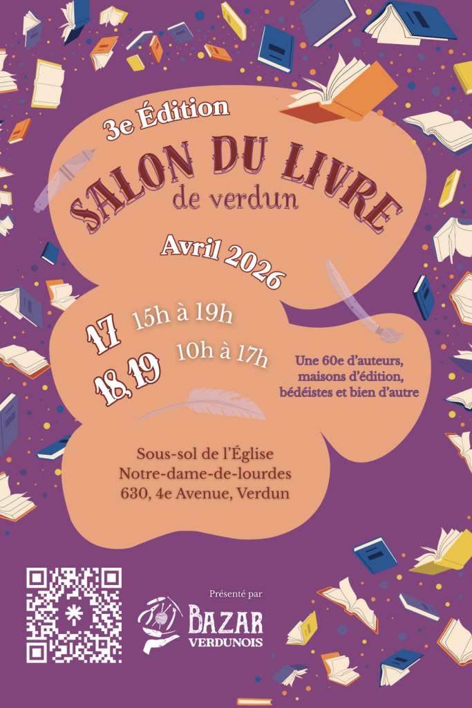Réunissant près d’une soixantaine d’auteurs, d’autrices, de maisons d’édition et d’acteurs du milieu littéraire, le Salon du livre de Verdun occupe une place grandissante sur la scène culturelle verdunoise. Grâce à l’énergie déployée par Bazar Verdunois, organisme promoteur d’événements locaux en art, culture et créativité, l’événement en sera à sa troisième édition en 2026.
